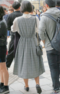 緩やかに増えていたのがタイトスカートとローファー。チェック柄...