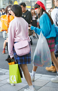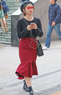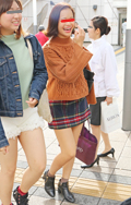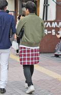 伊勢丹のショッパー風のタータンチェックも散見された。ミニスカ...