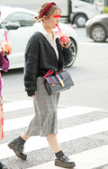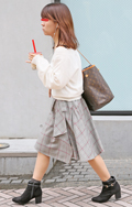 ロングタイトスカートもこの秋増えているアイテムの一つ。チェッ...