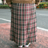 KBF(ケービーエフ)のInstagramでみて、可愛いなと思って買いました。丈感と3つの柄が切り返しで入っているとこがいいです。これが全部茶色の無地とかだったら買ってないです。赤が入ってるのが良い。去年もチェックのアイテムは履いていました。グレーでワイドなやつとか…。柄すぎるのはあまり好きじゃなくて、膨張して見えるし、スタイルはよく見せたいです。