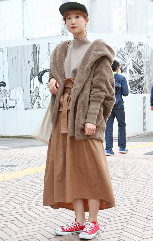 いちばん上に着用しているもの=トップスがモコモコしている女性すべて。色や柄は問わない。