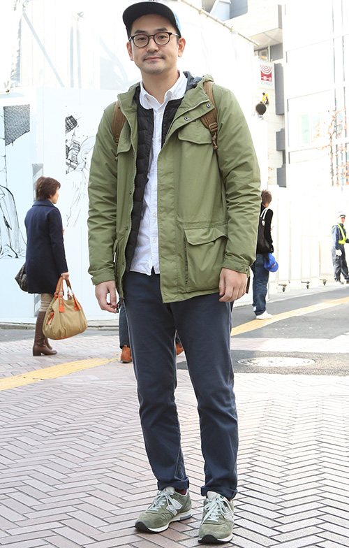 いちばん上に着用したアウターにフードが付いている男女全て。下に着たフーディーのフードをアウターの外に出しているスタイルも含む。色や柄、素材は問わない。