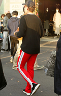 裾の部分にスリットの入ったトラックパンツか今春から引き続き人...