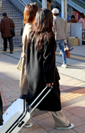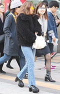 新宿ではリブニットのパンツが増えていた。12月でも素足にサン...