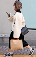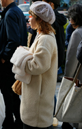 アウター、バッグ、マフラー、ベレー帽をすべてモコモコのアイテ...