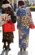 着物を中心にバッグやブーツの雰囲気までお揃いにした双子コーデ...