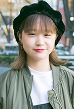 A 今日はお姉ちゃんと一緒だったので、いつもより大人っぽさを意識しました。いつもはこのベレー帽は、紫色のアウターなど色物で派手なものに合わせます。この帽子は友だちがかぶっていて、欲しくなりました。友だちはダボダボの服を着ている子が多いのですが、かぶるのが嫌でダボダボではない感じにしたいと思っています。