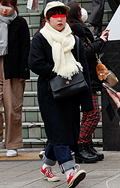 首のまわりに何らかのアイテムを巻いて首を覆い隠している女性すべて。アイテムや色、素材などは問わない。