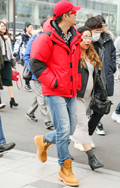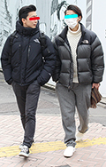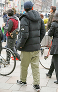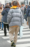 ダウンジャケット+フーディーは王道の組み合せ。一部の男性の間...