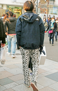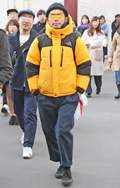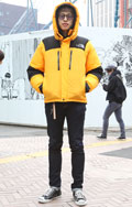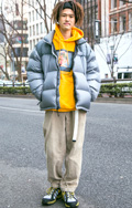 赤系の色に次いで多かったのが黄色のダウン。半端丈パンツ+ソッ...