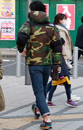 じわじわ増えている迷彩柄はノースフェイスのダウンジャケットに...