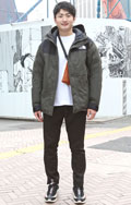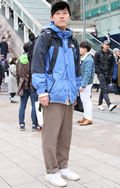 上下ともにNORTH FACEで統一したコーディネート。ギア...