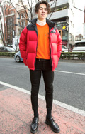 オレンジ色のダウンジャケットも散見された。NORTH FAC...