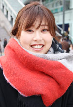 マフラーは寒かったので、夜心配で持って来ました。ユニオンジャックの柄で大判なのが気に入っていてよく使います。大判ばかり持っているけれど、友だちに貸しているので他はないです。ブーツはドレスアップできてホテルにはいていけそうなものを探していました。このブーツはヒールがあるけれどはきやすいんです。いつもヒールをはいているので、派手だという抵抗はなかったです。今日のコーディネートはすぐに決めました。スニーカーは合わないと思い、丈の長いブーツを選びました。パンプスは持っていないです。