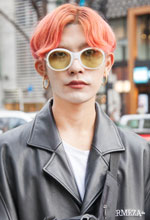 ヘアカラーはピンクが落ちてきていまの色になりました。モノトーンの服が多いので、髪は明るめにしています。赤がほとんどです。