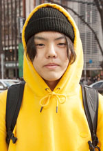 今日は外が暖かくてアウターはいらないと思ったけれど、寒すぎないやつがいいと思ったからパーカーにしました。クローゼットを開けたらこれが目立っていました。黄色だから見つけやすいというのもありますね。