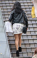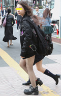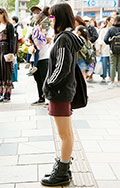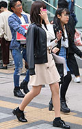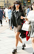 ライダースとミニ丈ボトムの組み合わせは今春は若い女性の間で定...