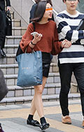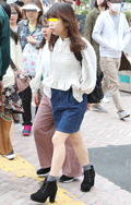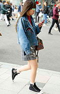 タイトスカートで最も目に付いたのはデニム素材。脚を出しつつフ...