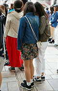 デニムのミニスカートはちょっぴりデザインが入ったものが人気。...