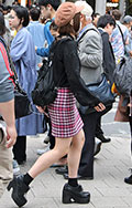 ミニスカートは、デニムとチェック柄に加えてシンプルな黒が大半...