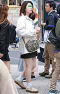 少数派ではあるものの、タイツを合わせる女性も。差し色のイエロ...