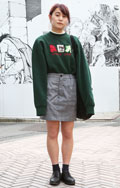 タイトスカートにレザージャケットを合わせたミックスコーディネ...