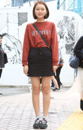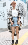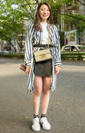 アースカラーのコーディネートもミニスカートに変えるだけでアク...