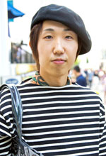 A フレンチが好きなのでバスクシャツを着ました。Saint James(セントジェームス)のは2つ持っていて、もう1つは、定番の白ベースに黒の柄。いつも黒やネイビーのワイドパンツやスラックスと合わせています。その他に、ロンTは持っていません。