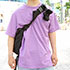 このTシャツはダメージオーバーダイという染め方で、この染め方が、自分の持っている古着に合いそうだと思って買いました。紫色は人とかぶらないので好きです。パーカーなどをよく着ていて、オーバーサイズのコーデが多いですね。タイトなものは買いません。