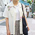 夏の昼間は暑いから丈の短いシャツにして、夜はまだ少し寒いから上から羽織れるレーヨンのシャツを着ました。STUSSYでのショップとかにいる若い人には、ロゴTが人気だと思います。でも原宿だとロゴ以外のデザインTも人気だと思う。
