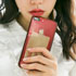 A  iPhone。赤が好きで、ケースで本体の色を隠したくないのでこのスマホケースを使っています。