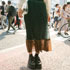 A このスカートは安かったし、フィーリングでいいと思いました。自分に合うと思って。カラフルなもの、特に赤色が好きなんです。これはシャツに合わせることが多いですね。普段からよく着ています。