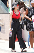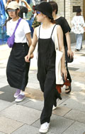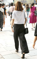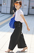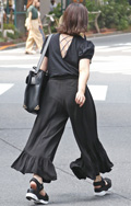 黒い色のパンツを着用している男女すべて。素材やデザインは問わない。オールインワンも含む。