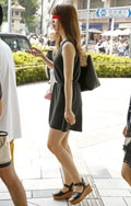 外国人観光客と思われる女性。潔く脚を出したミニ丈ワンピースス...