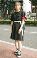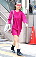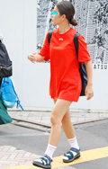MSGMの真っ赤なビッグTシャツがストリートで目をひいた彼女...