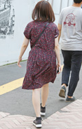 欧米の外国人観光客には、小花柄ミニ丈ワンピの着用率が高かった...