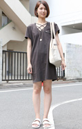 ミニ丈のフレアワンピースもグレーだったり、+レザーバッグとシ...
