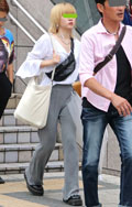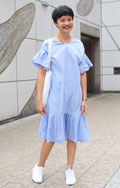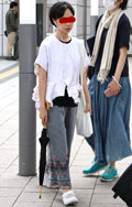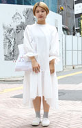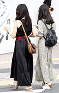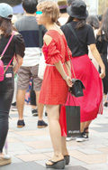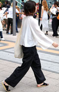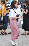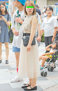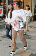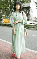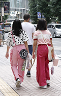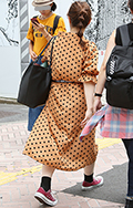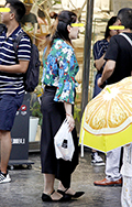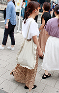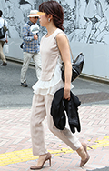 袖や襟部分に細かいギャザーやタックなどで装飾が施されたトップスを着用している女性すべて。素材は身頃と同じでも別(レースやリボン)でも可。色も問わない。