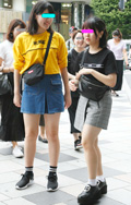 ピンクなどカラーデニムのホットパンツも少数ながら見られた。ロ...