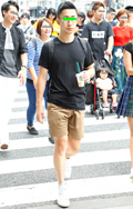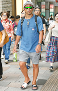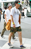 男性にも多く見られたヒザ上丈のショートパンツ。20代後半〜3...