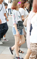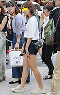 ホットパンツにトップスをインして脚を長く見せた着こなしが一般...