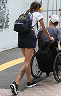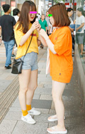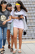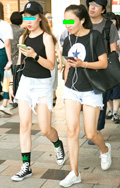おそらくハーフと思われるホットパンツのティーンズたち。ミドリ...