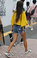 ホットパンツで多かったのはダメージの入った切りっぱなしのデニ...