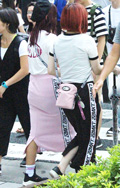 カラフルなスカートが多かった観測日の新宿。赤系の色も根強い人...