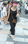 合わせやすい黒いタイトスカートも多かった。キャップやVANS...