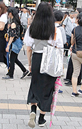 デニムのタイトスカートが多かった新宿地点。カジュアルなアイテ...
