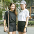 足が筋肉質なのがすごくコンプレックスで、スキニーだと逆に目立つので出した方がいいんです。今日のパンツは太もものいちばん太いところは隠せて、ちょうどいい丈でスタイルよく見えます。ショートパンツはあと10着くらい持ってるけれど、このショートパンツはよくはきます。同じようなものをいっぱい持っています。黒とか白、デニムなど、基本モノトーンでベーシックカラーのものが好きです。黒はスタイルよく見えるので、色ものは着ないです。下を細くするときは上をオーバーサイズにするとか、バランスを気をつけています。