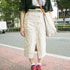 スッキリ見えるボトムスが欲しくてこのスカートを買いました。これは長すぎず短すぎず、ちょうどいい丈でした。ベージュは意外と持っていなくて、ちょうどそのとき好きだったmysty woman(ミスティウーマン)でいいのがあったので。フレアだと広がってしまうけれど、この形なら体型カバーができていいです。他だと、薄い素材の黒とストライプと幾何学模様と、3〜4着は持っています。他に合わせるのは、シフォン系のトップスとか、テロテロ素材の開襟シャツとかです。