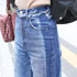 今日は表参道を意識して、辛い系、おとなっぽいイメージでいきたかったんです。このハイウエストデニムは、お尻のバックラインから腰回りのラインがキレイに出るところと、サイドの色落ちに差があるので立体的に細く見えるので買いました。実は持っているパンツは、ほぼハイライズのもので、普段からハイライズパンツをよく履いています。他の色は、黒とか薄いブルーのものです。多分、ハイライズのアイテムを履くようになったのは、お姉ちゃんの影響です。昔から、身長が高かったので姉の服を自然と着ていました。今は自分の体型や身長にあったアイテム選びをしていて、とにかく、足長でスタイルがよく見えることを意識しています。