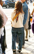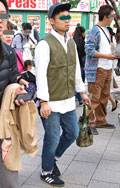ネイティブ柄のベストにリーバイスのデニムパンツによるアメカジ...